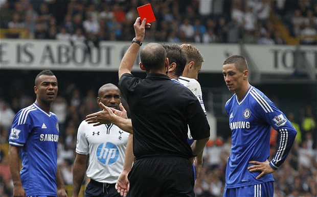 Нападателят на Челси Фернандо Торес може да бъде дисквалифициран за четири мача. Както е известно, испанският футболист бе изгонен в 82-та минута на мача от Висшата лига срещу Тотнъм след като наруши правилата при единоборство с Ян Вертонген. Първият си жълт картон Фернандо получи за тежък фаул също срещу Вертонген, след което хвана съперника си за лицето.