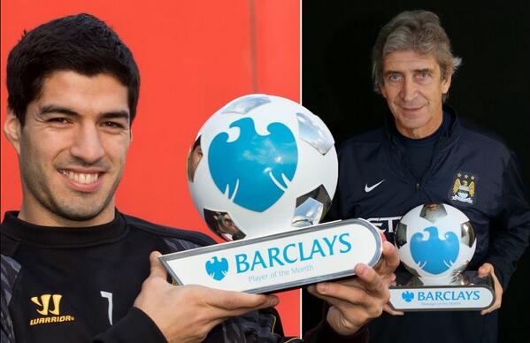 Нападателят на Ливърпул Луис Суарес и наставникът на Манчестър сити Мануел Пелегрини бяха признати за най-добър играч и най-добър мениджър във Висшата лига на Англия за месец декември. 26-годишният уругваец установи рекорд по отбелязани голове за един месец, отличавайки се с десет отбелязани попадения. Благодарение на тази скорострелност, Суарес оглави голмайсторската класация в най-силното първенство на планетата.