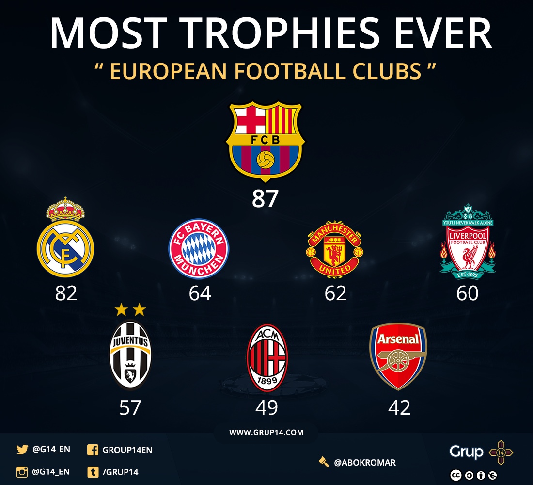 Отборите с най-много трофеи от топ 5 на първенствата в Европа.